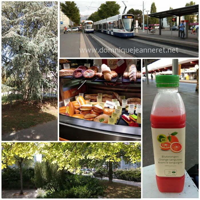 Le tram, les arbres, de quoi petit déjeuner et le bon jus d’oranges sanguines