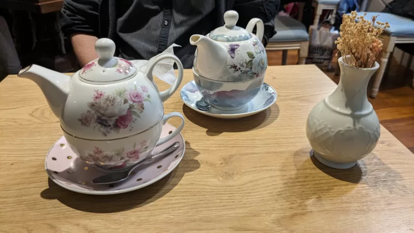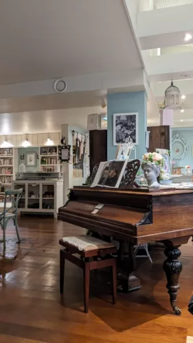 Nous sommes allés au « Piano dans la théière », un charmant salon de thé vintage et vegan au milieu duquel trône un piano. Le temps d’un thé, nous avons parlé de la vie et de cheminement, d’intentions, de décisions, de croyances et de blessures, d’abondance, de reconnaissance, de signifiance et légitimité, et de tous ces sujets qui nous touchent tous dans notre avancement personnel. Ce fut bien agréable de retrouver Olivier après toutes ces années.