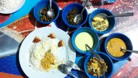 Pour les personnes qui ont des intolérances/allergies : on mange majoritairement du riz mais certains mets pourront contenir du blé/gluten. Tout est cuit au lait de coco et le lait de vache est rarement utilisé à part pour les yoghourts. Il se peut que des noix de cajou soient présentes dans certains currys.